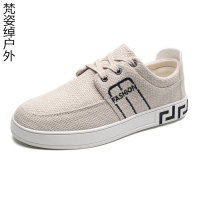 帆布鞋男士低帮板鞋韩版潮流休闲鞋亚麻布鞋时尚系带平底男布板鞋