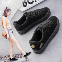 2017秋冬新款二棉鞋韩版百搭休闲鞋女帆布鞋学生厚底刺绣黑色板鞋