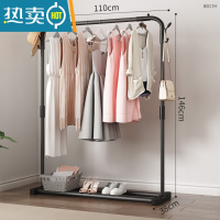 敬平简易晾衣架落地折叠室内单杆式凉衣服晒架子家用衣帽架卧室挂衣架 黑色单杆[置物款]110CM 中