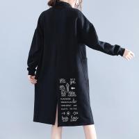 秋冬新款韩国文艺范大码宽松加绒加厚长款卫衣女显瘦印花开衫外套
