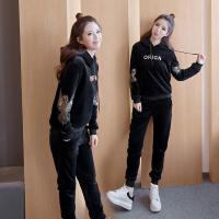 运动套装女加绒韩版金丝绒卫衣加厚丝绒冬2017新款冬季两件套时尚