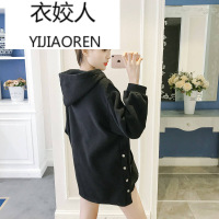 衣姣人(YIJIAOREN) 女装2017中长款卫衣新款女加绒加厚宽松前短后长连衣裙韩版学 黑色 S