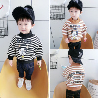 男童冬季2017新款加绒卫衣韩版儿童条纹加厚套头上衣女童打底衫潮