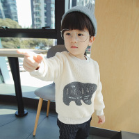 童装冬季新款男童毛巾绣北极熊加绒卫衣 中小童韩版宝宝卫衣潮