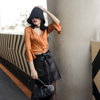 泡澡的蚂蚁秋装孕妇装新款韩版外穿皮裙包臀孕妇短裙托腹半身裙潮妈 J6661