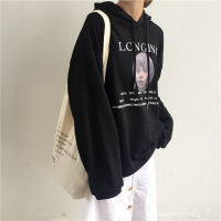 珂依舍2017秋装新款实价嘻哈头像连帽中长款慵懒卫衣女宽松学生潮bf5803#