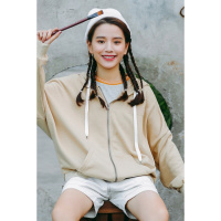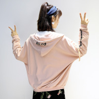 2017新款小清新连帽开衫卫衣女2017春秋新款韩版宽松学院风印花蝙蝠袖外套