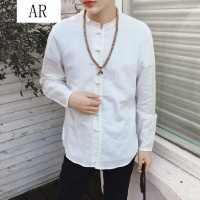 2017亚麻衬衫男中国风男装复古棉麻盘扣立领宽松居士汉服长袖衬衣
