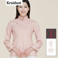 Kruidvat2017春季新款棉麻改良汉服女长袖旗袍上衣茶人服B077