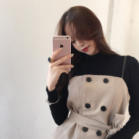 珂依舍2017秋装新款2016新款韩版双排扣绑带修身吊带背心上衣女外穿套潮