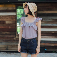 2017新款瞌睡兔小清新荷叶边上衣无袖棉麻吊带背心女外穿夏2017新款