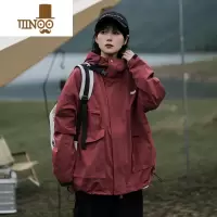 YANXUcityboy日系户外冲锋衣男女红色连帽外套登山服宽松机能夹克