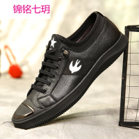 男生真皮厚底板鞋男款潮鞋头层牛皮欧洲站男鞋男士休闲小众增高鞋