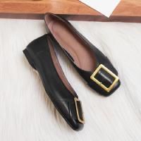 卡帝姗头层牛皮金属装饰套脚圆头平底平跟搭扣浅口乐福鞋女鞋低帮鞋
