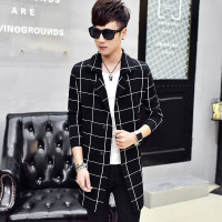 2017开衫毛衣秋冬季中长款开衫士韩版格子长袖针织外套青少年潮流线衫