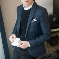 秋冬季休闲西装男士韩版修身英伦帅气格子小西服外套单件潮流