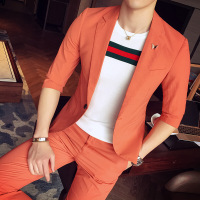 夏季男装修身七分袖西装两件套韩版男青年精品单排扣西服套装
