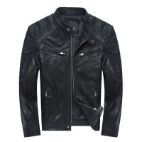 秋新款机车短款绵羊皮植糅真皮皮衣男青年修身立领皮夹克外套黑色