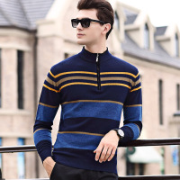 男士羊毛衫 冬季新品男士长袖加厚针织衫男青年拼色套头打底衫潮