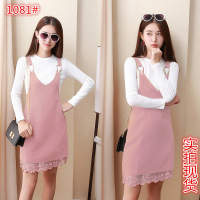 薇侣2017新品背带裙两件套夏裙子新款女装秋款套装裙秋季长袖时尚连衣裙女