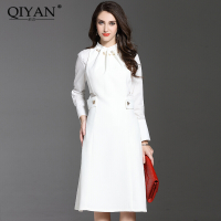 2017秋季女装新款立领长袖修身显瘦女士纯色中长款连衣裙两件套女欧美套裙白色