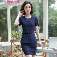 锦铭七玥职业西装短袖女修身显瘦圆领职业装工装工作服套裙两件套工作服女