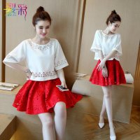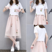 夏季套装裙女2018新款女装韩版时尚T恤网纱裙两件套学生连衣裙潮