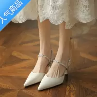 SUNTEK一鞋两穿女凉鞋2023夏新款中跟尖头包头包跟米白色细跟高跟鞋