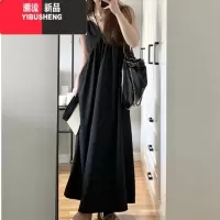 YIBUSHENG黑色挂脖连衣裙女季高级感流苏气质名媛露肩显瘦无袖短款裙子女