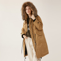 新款纯色简约羽绒服女抽绳宽松加厚韩版大毛领外套派克服