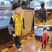 2017秋冬新款时尚韩版休闲百搭纯色男童女童棉袄马甲外套儿童上衣