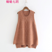 锦铭七玥文艺风休闲针织马甲春季新品女圆领色麻花菱形字上衣