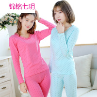 保暖内衣女士纯棉薄款印花 秋衣秋裤套装少女学生内衣圆领蕾丝边