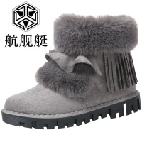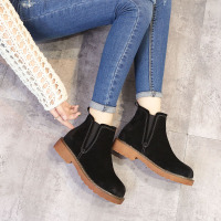 2017秋冬新款英伦风女靴百搭厚底圆头磨砂皮加绒保暖短靴棉靴女鞋