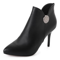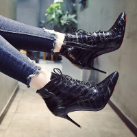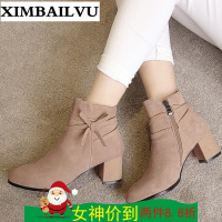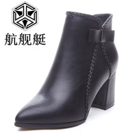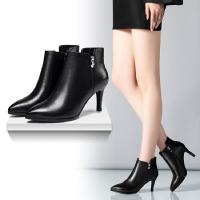 2017秋冬新款女靴高跟短靴冬天女鞋尖头侧拉链单靴细跟百搭裸靴