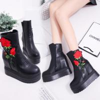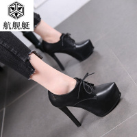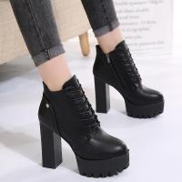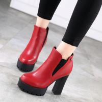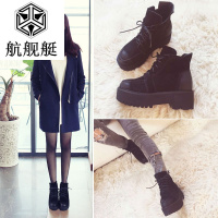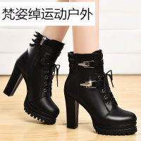 盾狐马丁靴潮女短靴2017新款秋冬季女鞋粗跟防水台高跟女靴子加绒
