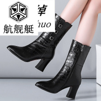 女靴子2017秋冬新款女鞋欧美真皮尖头细跟高跟短筒靴马丁靴短靴女