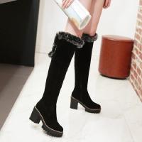 2017秋冬甜美兔毛磨砂粗跟高跟雪地靴防滑厚底高筒过膝棉鞋女靴子