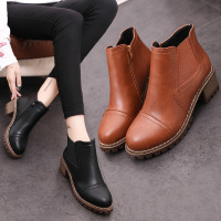 2017韩版秋冬新款短靴女鞋马丁靴女百搭平底粗跟切尔西学生女靴子