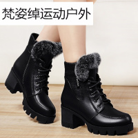 盾狐马丁靴女秋冬季女鞋2017新款兔毛女靴子粗跟加绒高跟短靴棉鞋