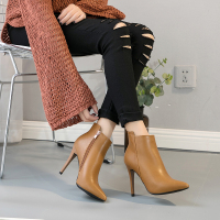 复古尖头短靴女秋冬新款磨砂真皮女靴粗跟软底中跟马丁靴棉鞋