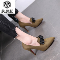 欧美防水台蝴蝶结细跟高跟鞋女2017秋冬新款百搭尖头裸靴女短靴单