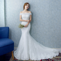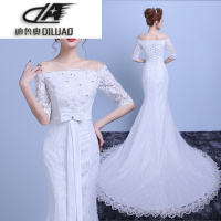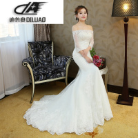 婚纱礼服2017新款韩式双肩收腰鱼尾小拖尾蕾丝婚纱一字肩显瘦冬季