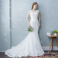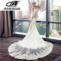 婚纱礼服2017新款冬 一字肩显瘦收腰鱼尾小拖尾蕾丝新娘结婚纱Y33
