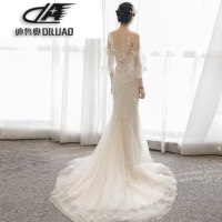 婚纱礼服新娘韩式长拖尾2017新款欧美长袖收腰鱼尾一字肩冬季