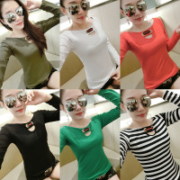 薇侣2017新品秋装新款潮时尚长袖T恤女修身显瘦打底小衫