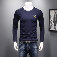 秋季丝光棉圆领打底衫男蜜蜂刺绣长袖T恤衫纯色小衫青年体恤t