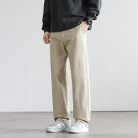 纯棉男士宽松直筒休闲裤卡其色春秋纯棉垂感阔腿商务通勤工装裤