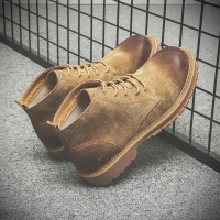新款秋季马丁靴男英伦沙漠靴工装鞋潮靴子真皮复古中高帮