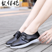 路蒙卡帝2017春秋季真皮乐福鞋百搭单鞋平底舒适圆头平跟懒人鞋系带休闲韩版